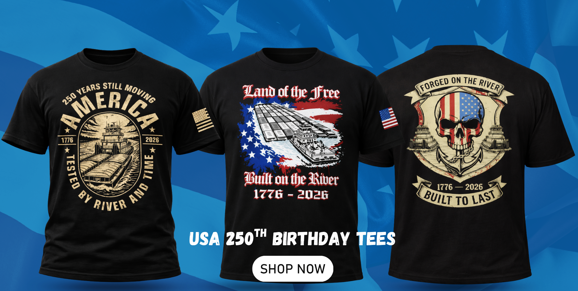 Land of the Free, Built on the River T-Shirt - Towboater Patriotic Tee - July 4th 250th Anniversary