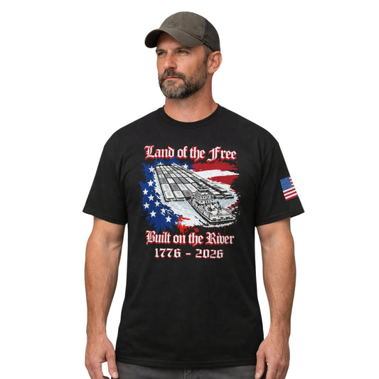 Land of the Free, Built on the River T-Shirt - Towboater Patriotic Tee - July 4th 250th Anniversary