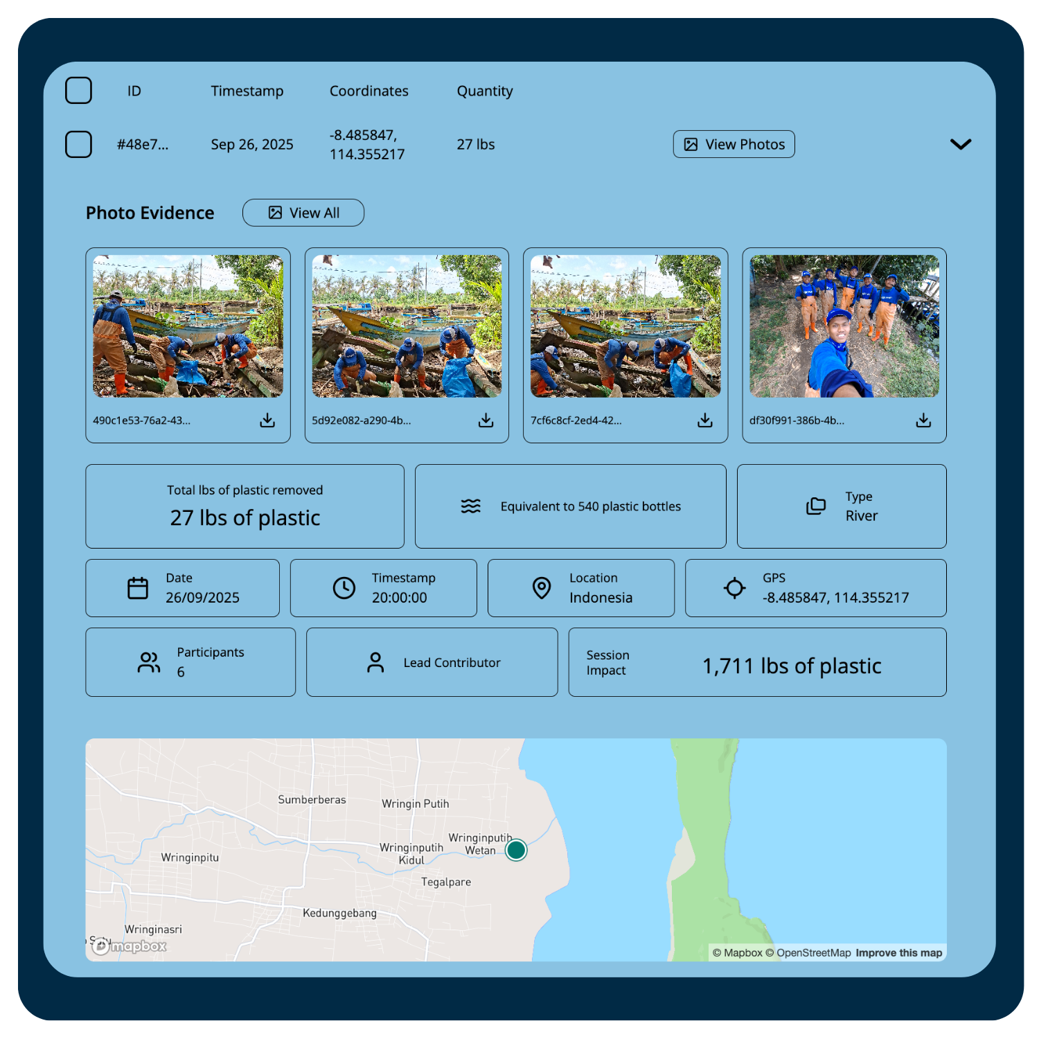 We believe in full transparency. Every pound of plastic we haul out of waterways is tracked, audited, and publicly verified. See exactly how your support is making waves.