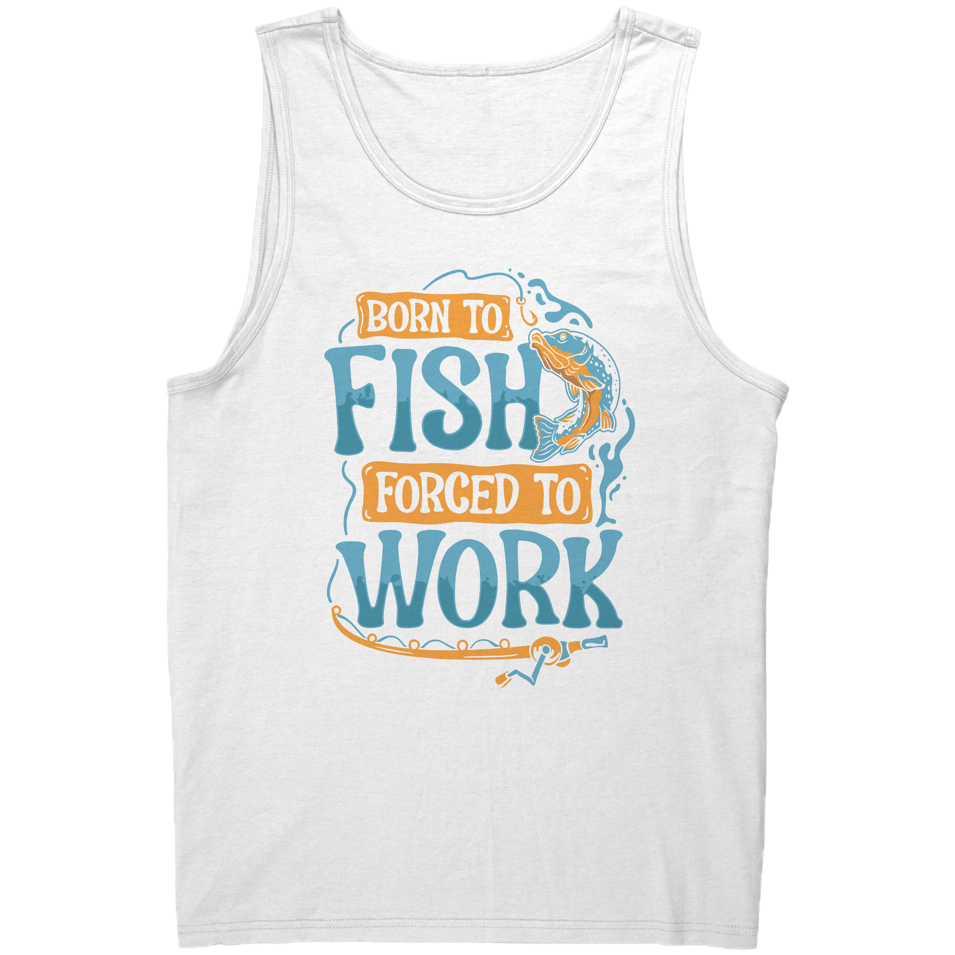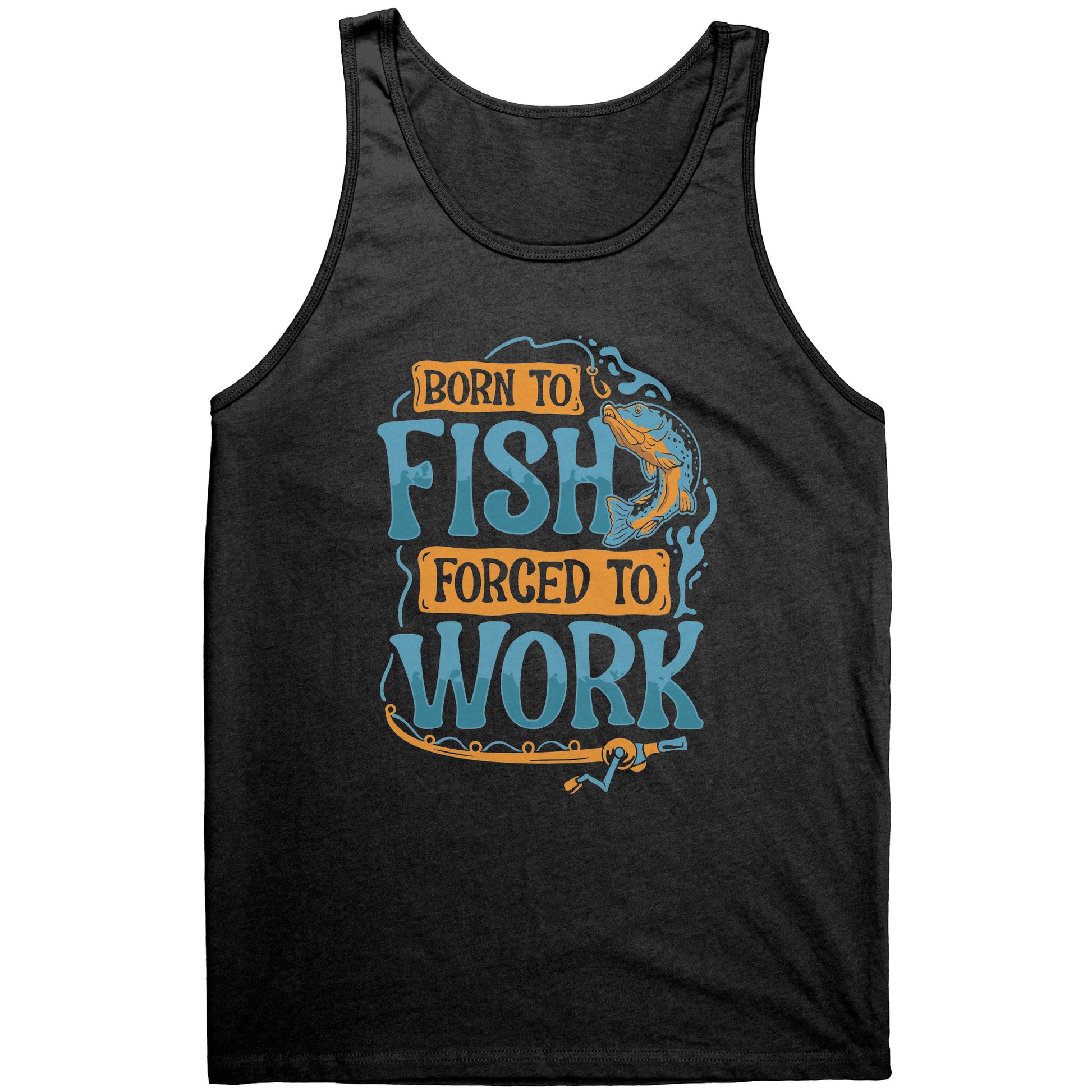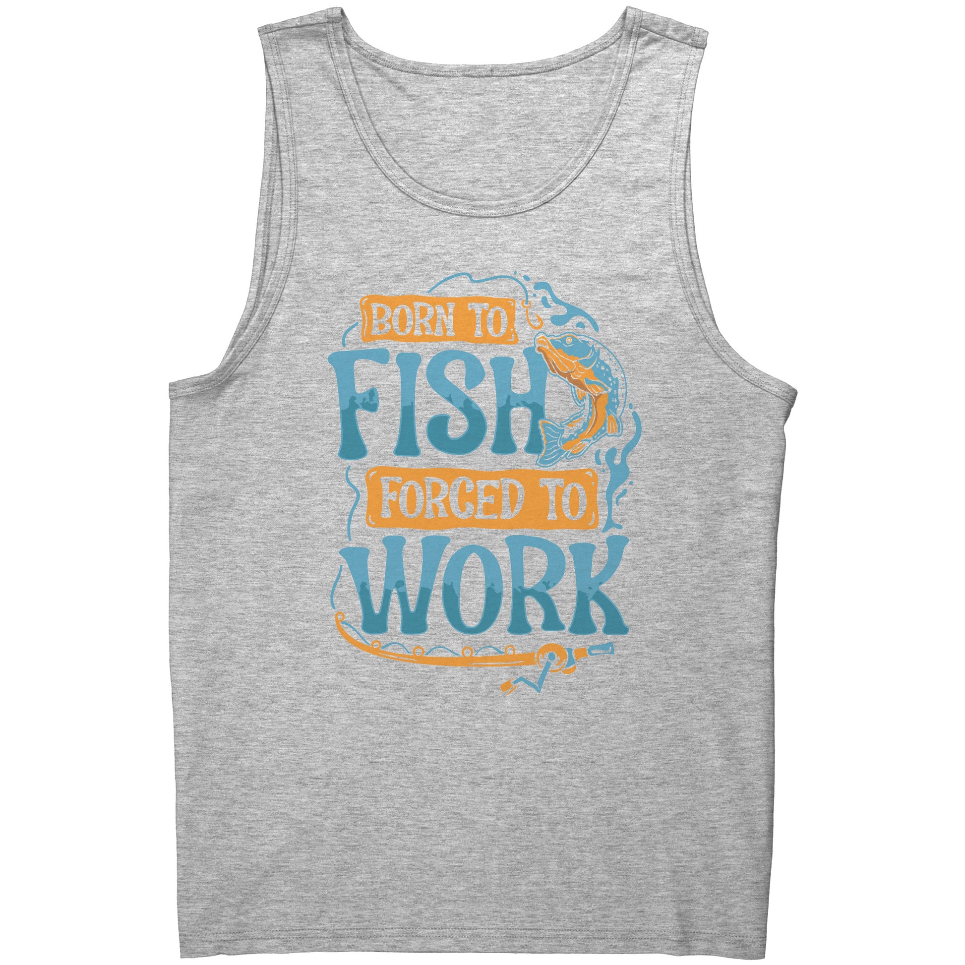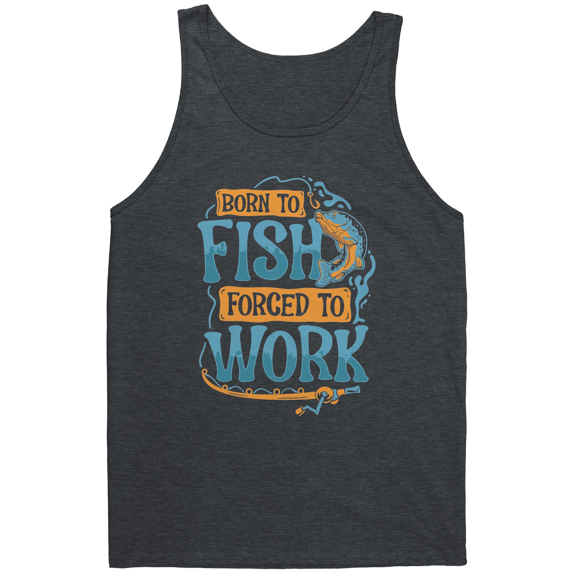 Embrace your true passion with our 'Born To Fish, Forced To Work' funny mens fishing clothes tank top. A unique bass summer men's fishing tee shirts, perfect for showcasing your love for fishing when outdoor in nature. Makes an ideal tank top tshirt for fishing gift for all angler at heart.