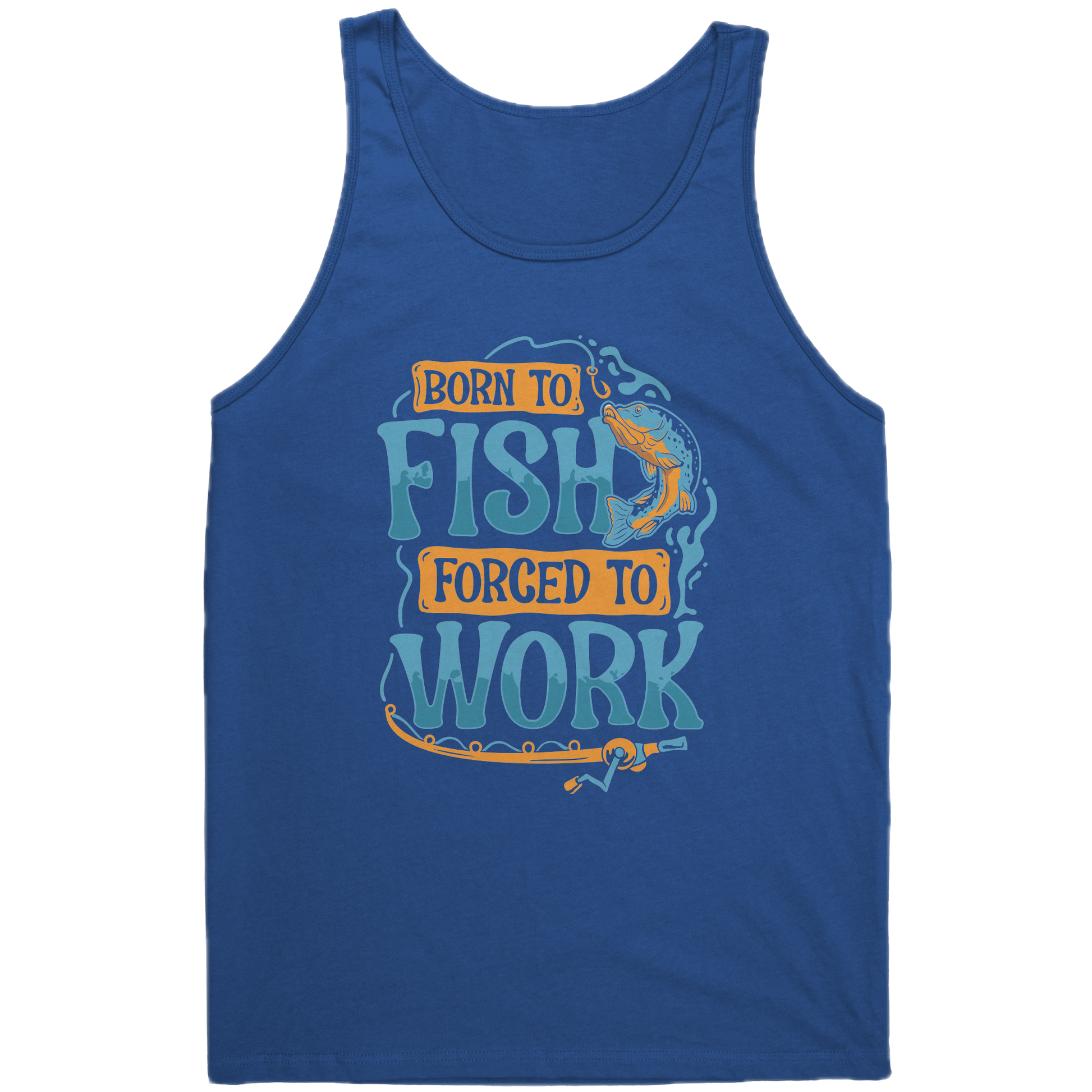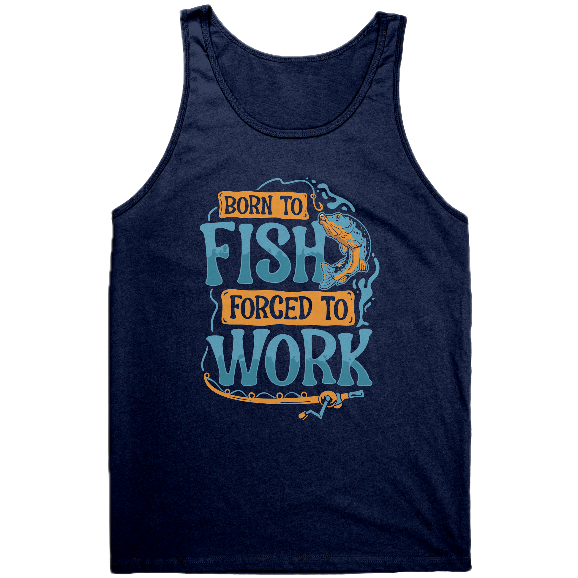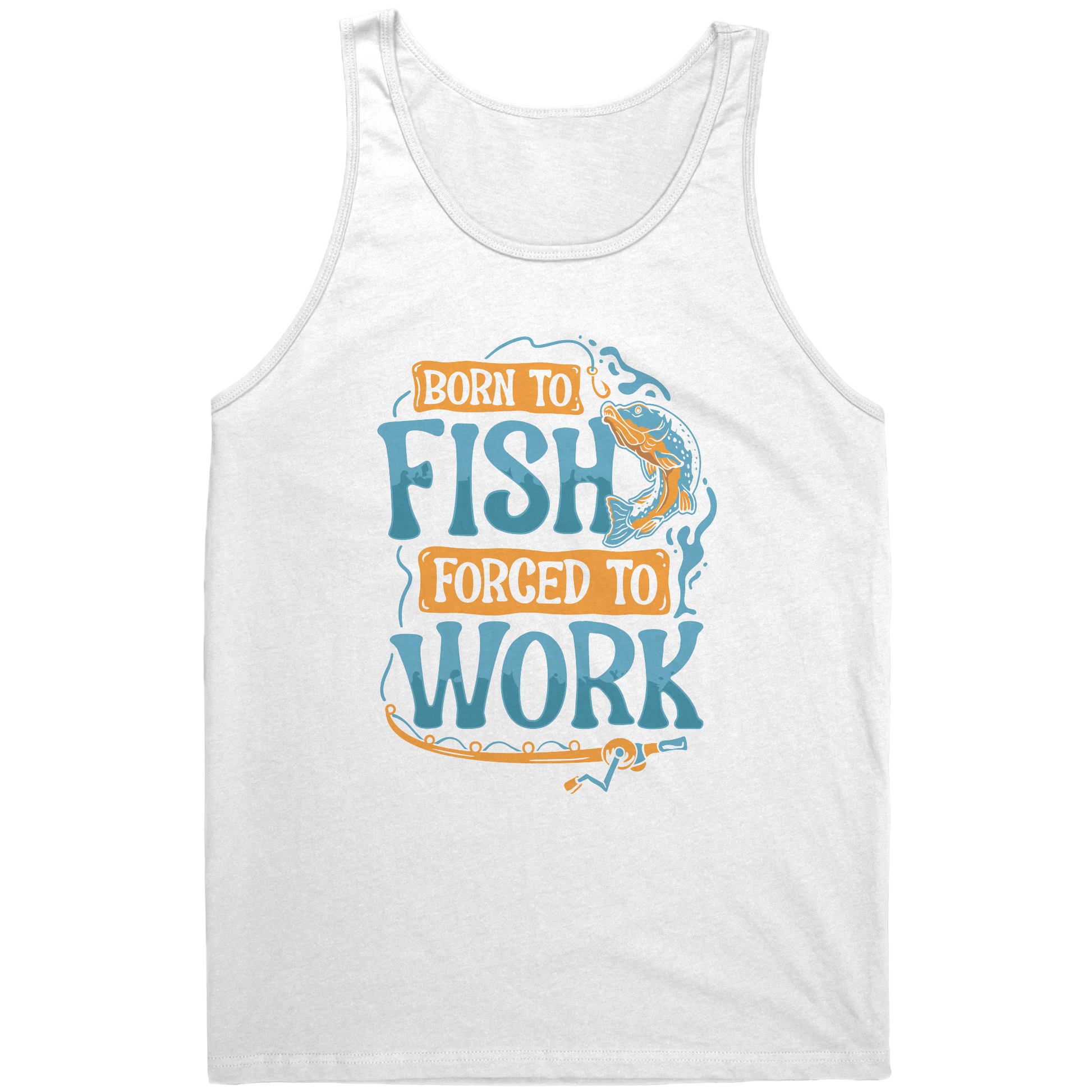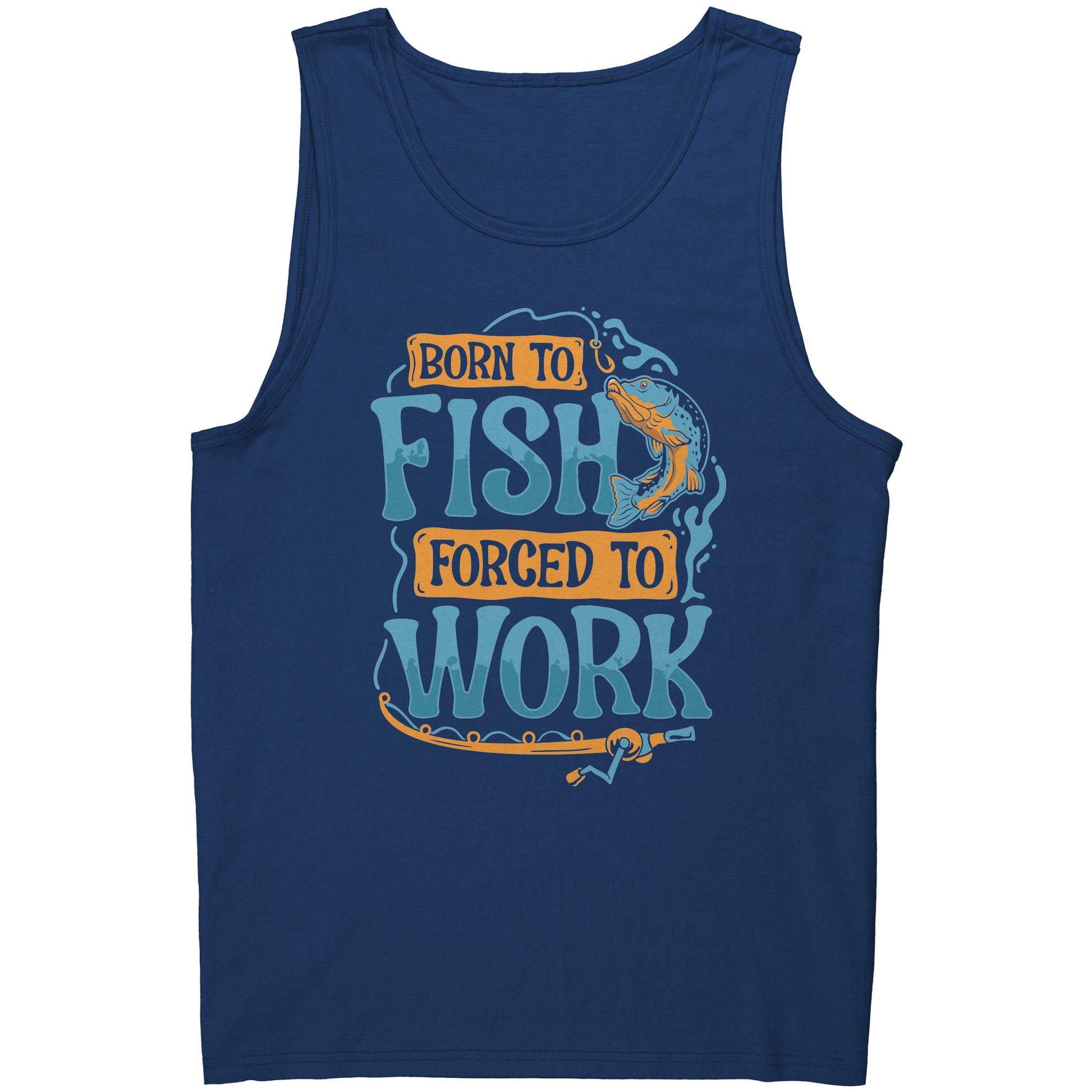 Embrace your true passion with our 'Born To Fish, Forced To Work' funny mens fishing clothes tank top. A unique bass summer men's fishing tee shirts, perfect for showcasing your love for fishing when outdoor in nature. Makes an ideal tank top tshirt for fishing gift for all angler at heart.