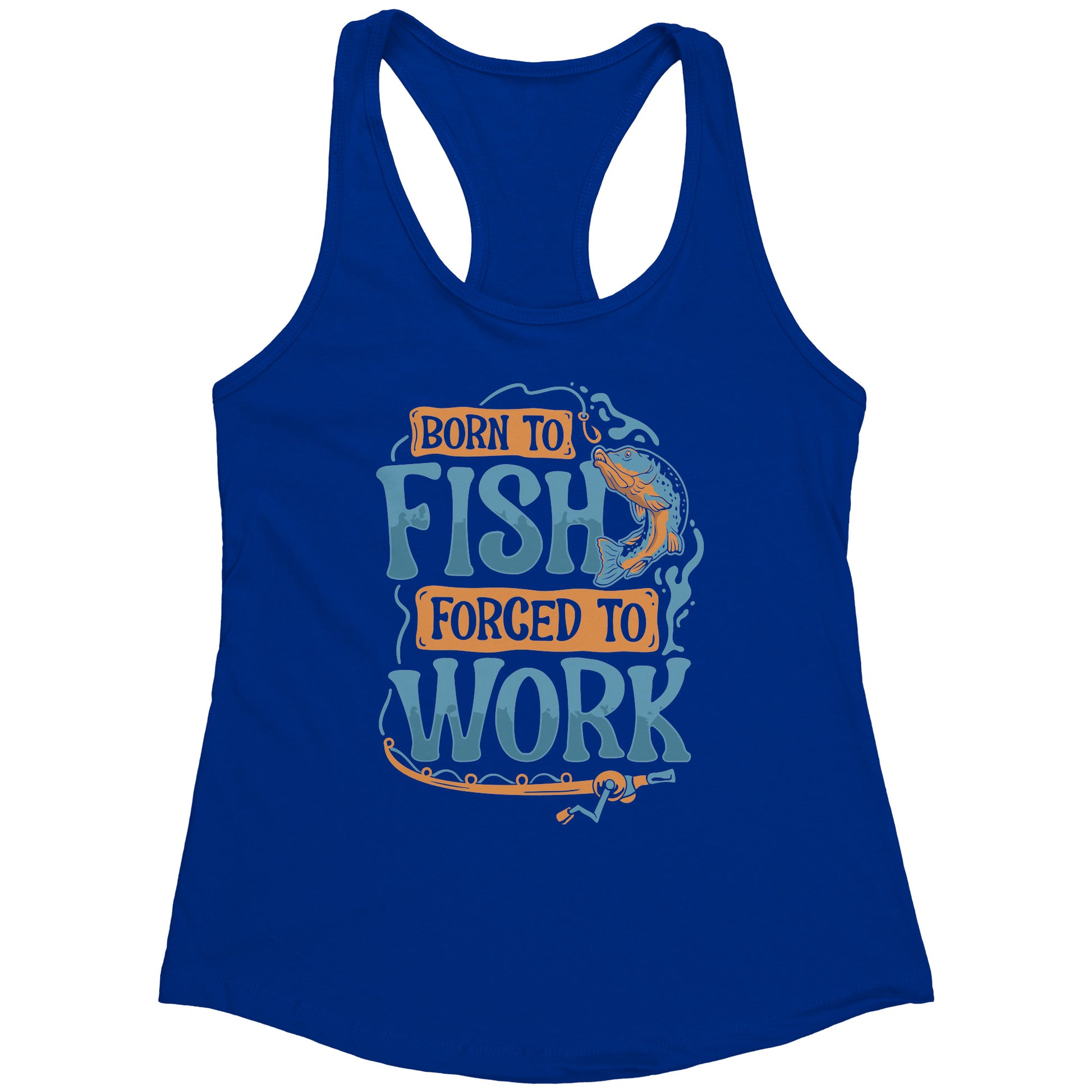Born To Fish Forced To Work - Funny Design Fishing Merch Humor Tank Top