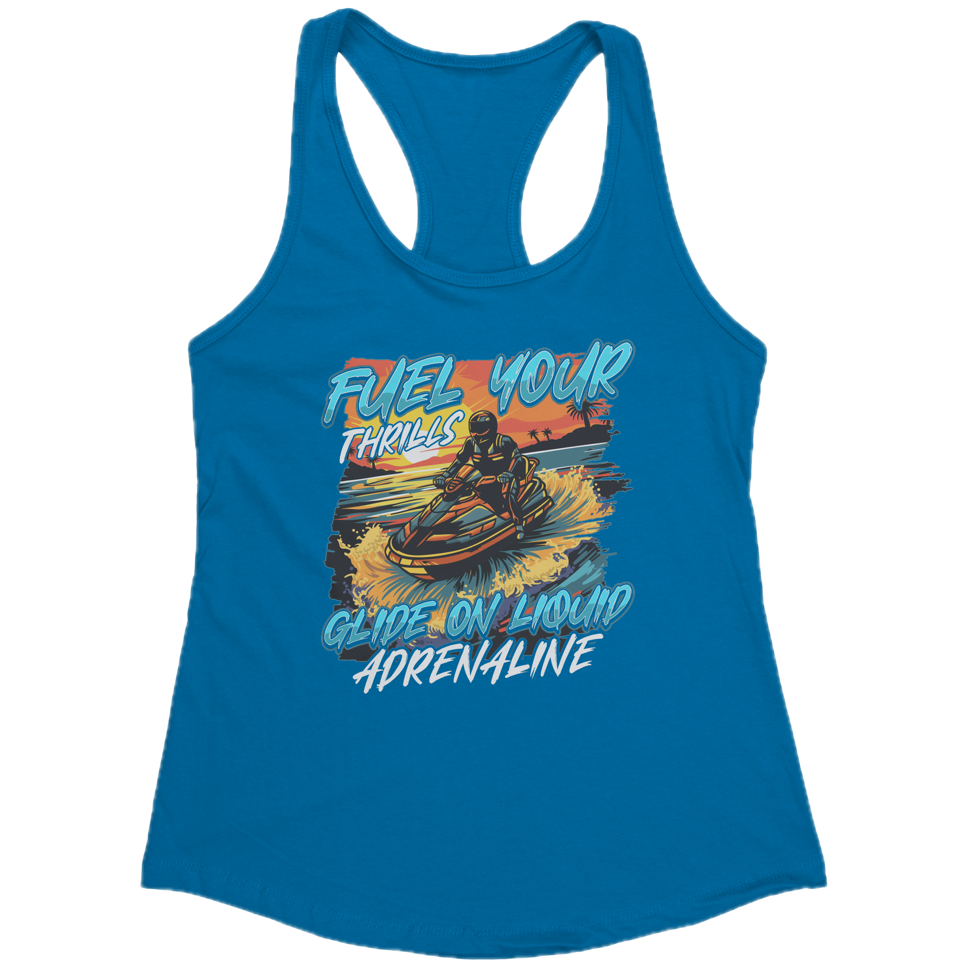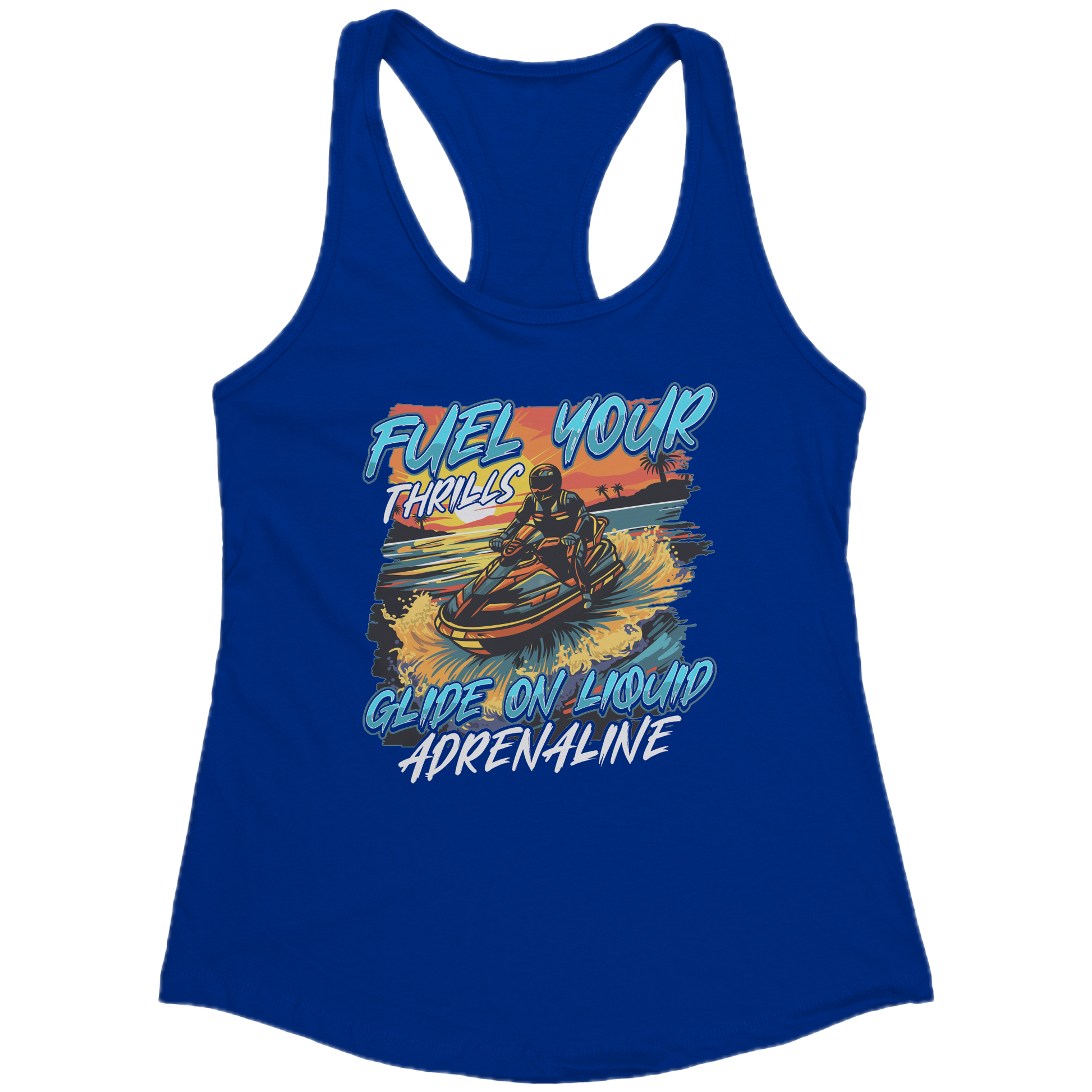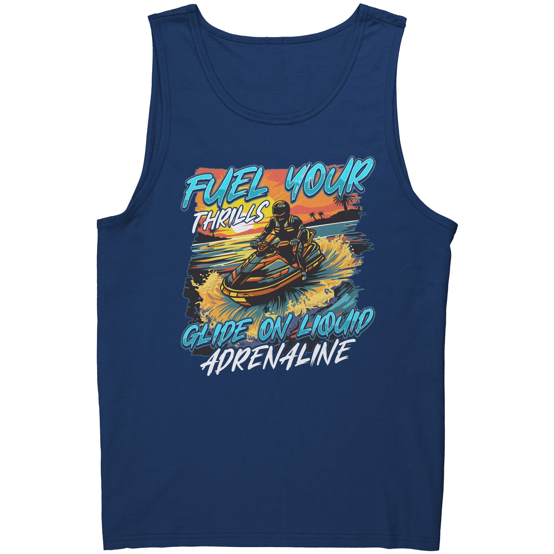 Get ready to ignite your summer adventures with our 'Fuel Your Thrills: Glide On Liquid Adrenalin' jet skiing tank top, an exhilarating watercraft apparel designed for the passionate jet skier. This jet ski summer tank top makes an awesome gift for your racing adventure. Embrace the fun, feel the adrenaline, and let this gift fuel your jet skiing passion all season long.