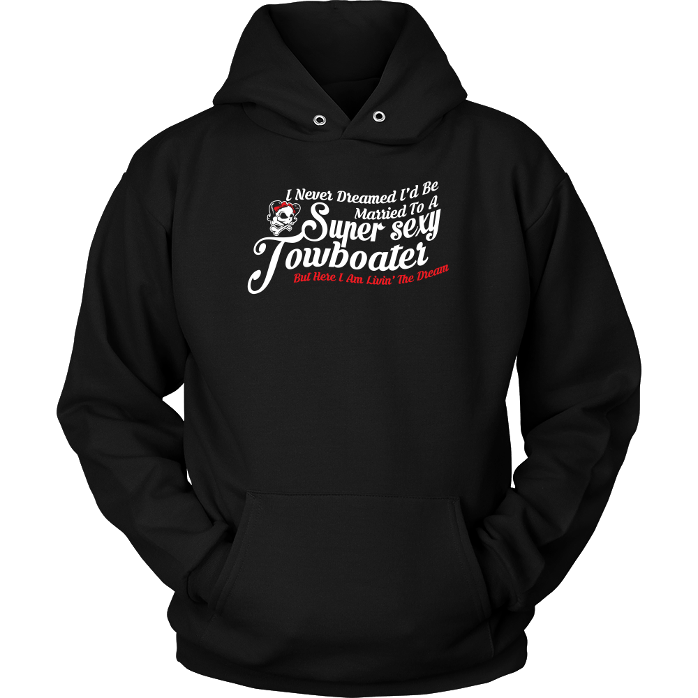 Set sail on a love story like no other with our "I Never Dreamed I'd Be Married to a Super Sexy Towboater" shirt. This design celebrates the unique journey of love and adventure that comes with being the partner of a towboater.