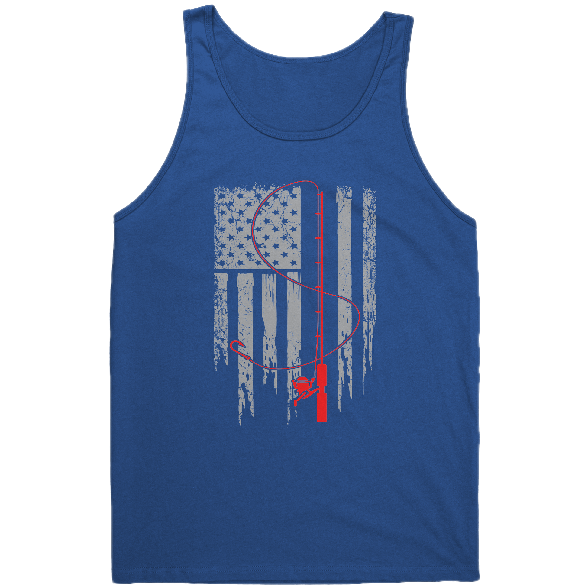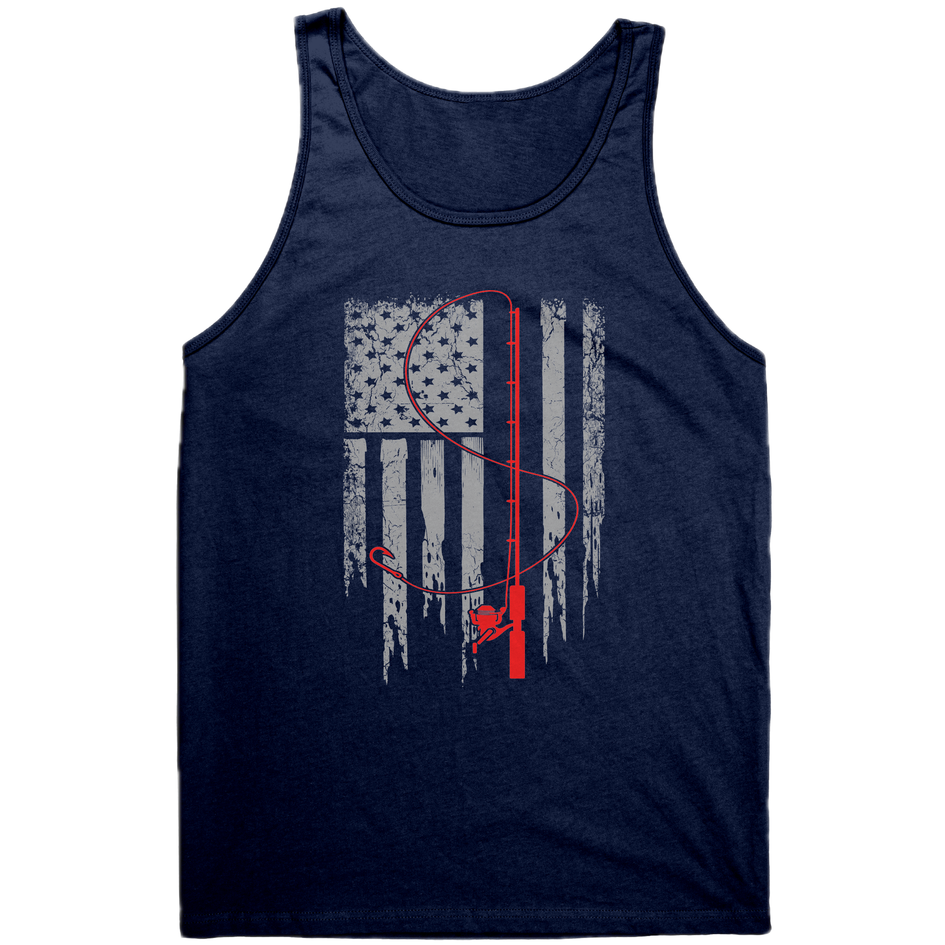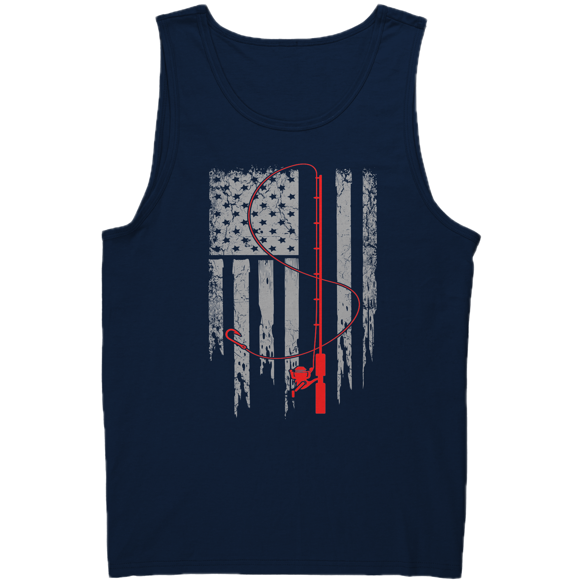 Introducing the "Patriotic Fishing Flag Tank Top" – a tank top shirt that pays homage to the enduring spirit of American anglers and their love for the open waters. Whether you're a seasoned angler or someone who simply appreciates the thrill of the catch, wear your passion proudly with the "Patriotic Fishing Flag Tee" – a stylish declaration of love for both the sea and 4th of july.