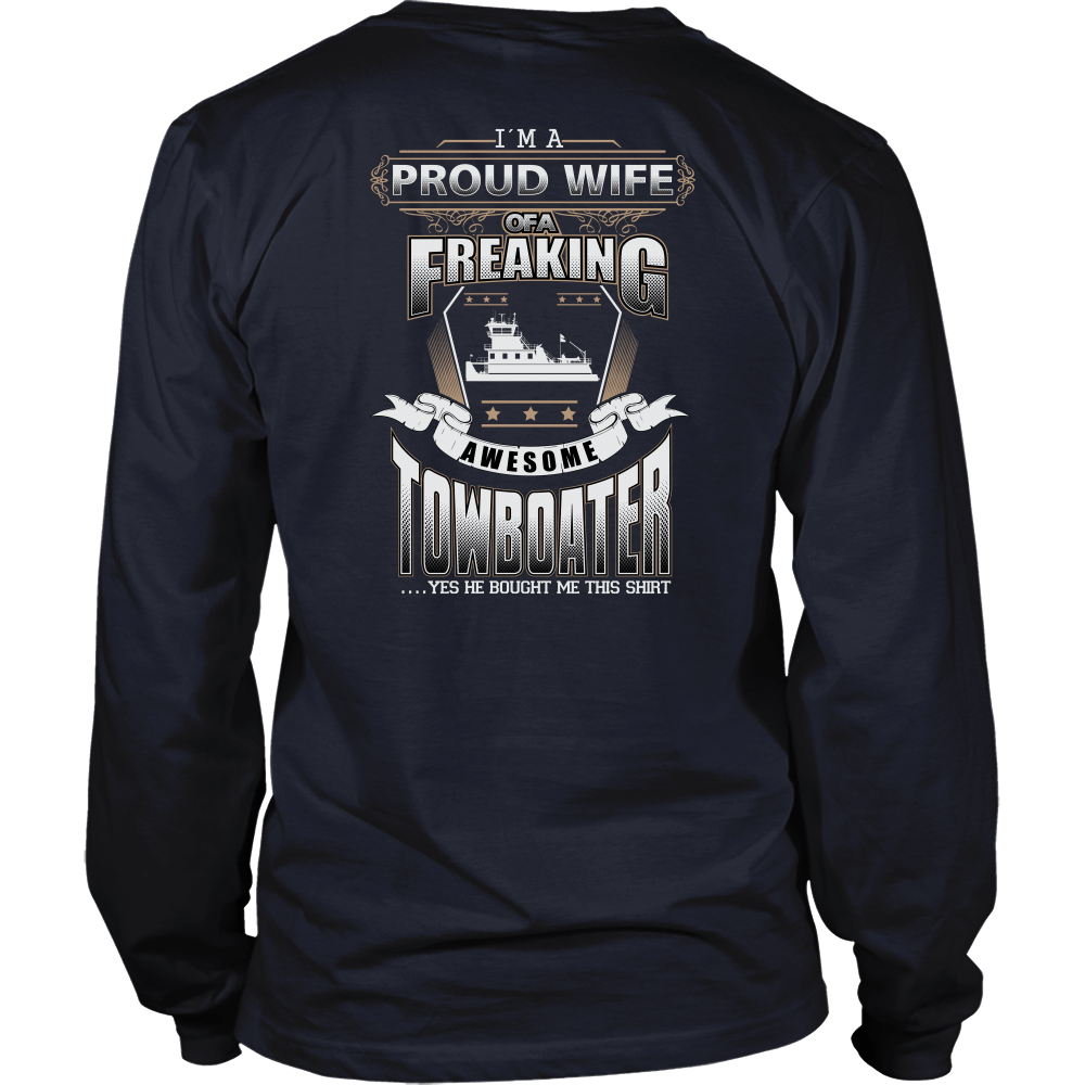 Navigate the waters of pride and love with our exclusive "Proud Towboater's Wife" T-Shirt, a symbol of strength, resilience, and unyielding support for the backbone of the towboating world. This design is crafted with care for the extraordinary women who stand proudly beside their towboater partners, embracing the challenges of the river life.