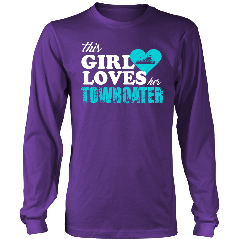 Introducing the "This Girl Loves Her Towboater" Tee – a design that celebrates the deep and unwavering affection that a special girl has for her towboater. This shirt is a vibrant expression of love and pride, capturing the essence of the unique connection between towboaters and their cherished supporters.